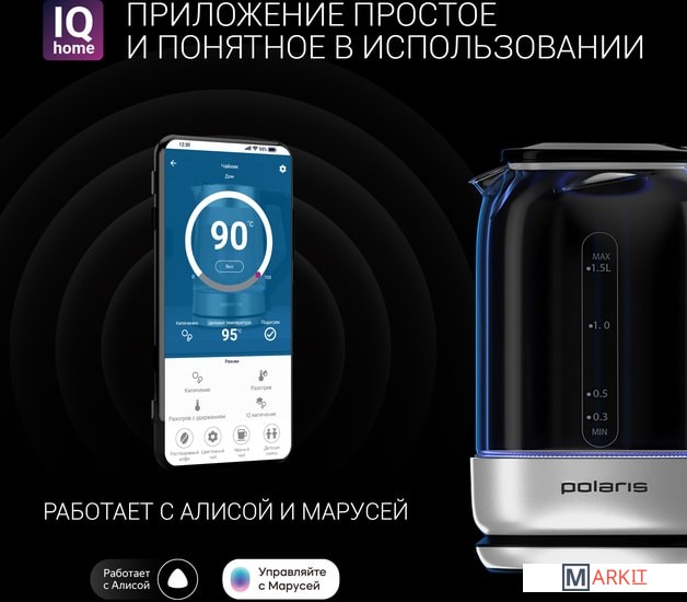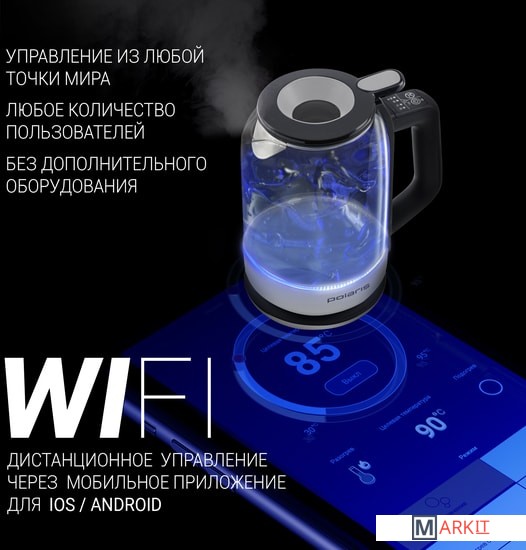 Markit » Электрочайники и термопоты » Электрический чайник Polaris PWK 1720CGLD Wi-Fi IQ Home (белый)