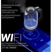 Wi-Fi управление без дополнительного оборудования.Запатентованная технология залива воды "WATERWAY PRO" для удобного залива воды в чайник без открытия крышки.Панель управления на ручке.Cъемная крышка для максимально удобной чистки чайника.