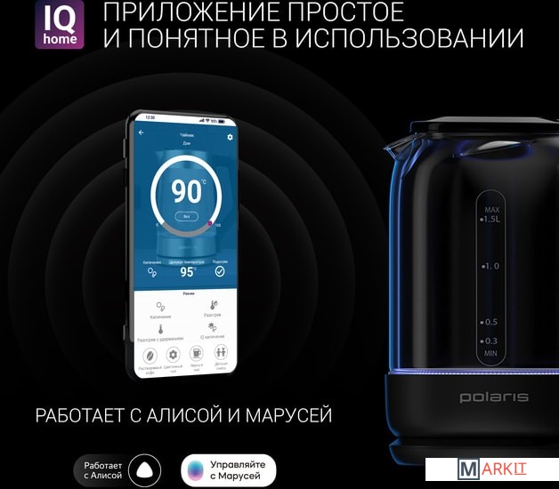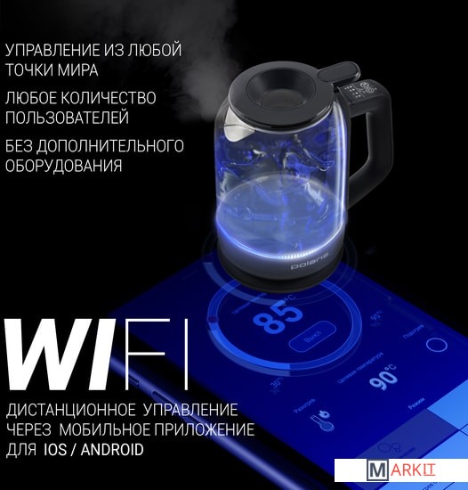 Markit » Электрочайники и термопоты » Электрический чайник Polaris PWK 1720CGLD Wi-Fi IQ Home (черный)
