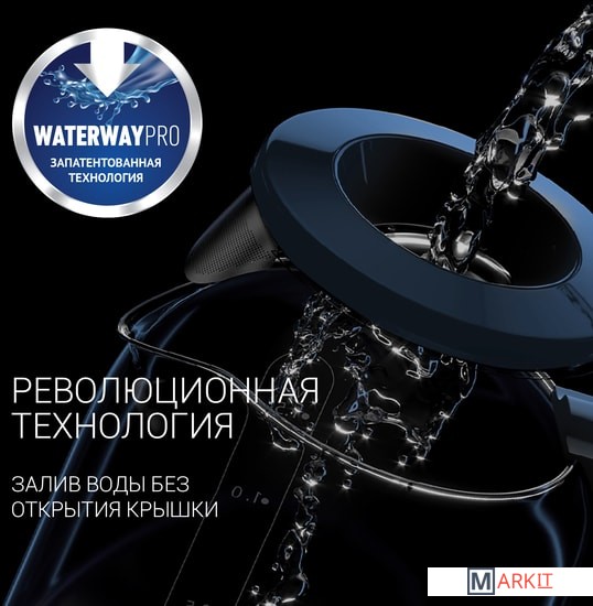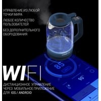 Wi-Fi управление без дополнительного оборудования.Запатентованная технология залива воды "WATERWAY PRO" для удобного залива воды в чайник без открытия крышки.Панель управления на ручке.Cъемная крышка для максимально удобной чистки чайника.