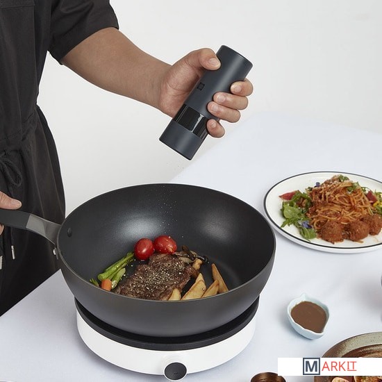 Мельница для специй электрическая аккумуляторная с регулировкой степени помола. Позволяет быстро измельчить в порошок крупный перец, соль, тмин и т.д. Индикатор заряда батареи, емкость 500 мАч, Type-C. Материал корпуса: ABS-пластик. Благодаря матовой поверхности пластика не видны следы от прикосновения рук. Регулировка интенсивности помола в 5 режимах. LED-подсветка.