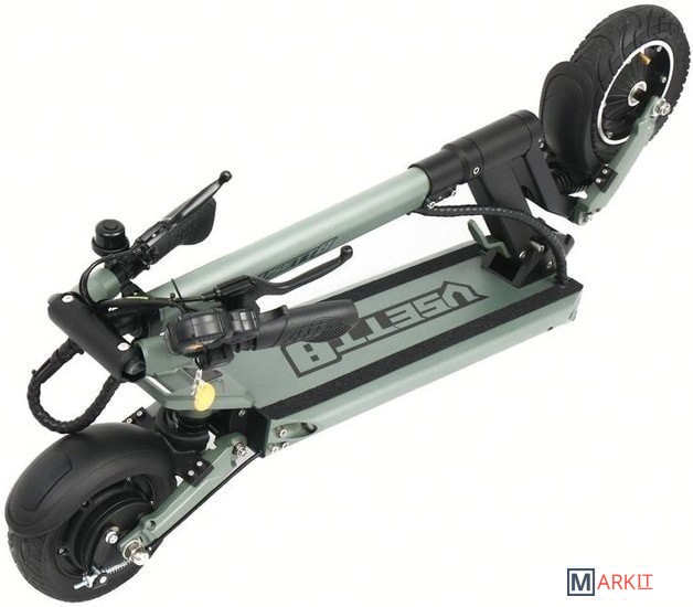 Защита с помощью иммобилайзера NFC Key Lock и вольтметра, который гарантирует, что только Вы можете запустить VSETT.Переднее колесо - надувное; заднее - цельное из резины.
