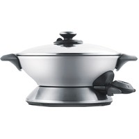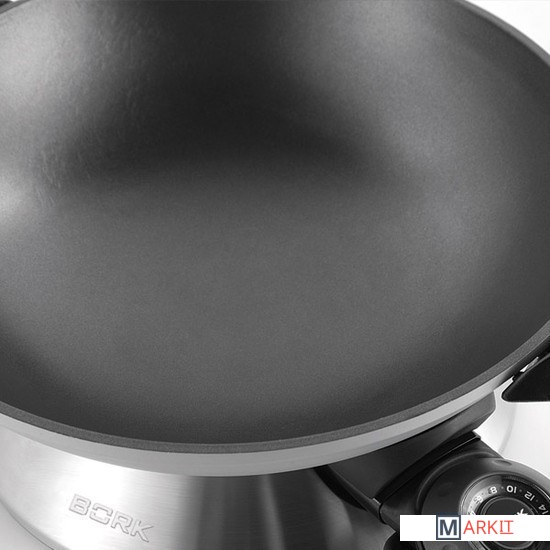 В воке легко приготовить блюдо восточной кухни (плов, том ям, овощи и другие блюда), а также ризотто, суп, компот или даже шоколадное фондю.Регулятор мощности имеет 15 температурных режимов от 40° до 218°С. Благодаря такому широкому диапазону можно тушить овощи, мясо, варить супы и варенье.Многослойное покрытие с уникальным составом ETERNA™ сохранит свои антипригарные свойства на весь период службы.Чаша объемом 6 л легко снимается для очищения в посудомоечной машине или компактного хранения.Крышка из высокопрочного стекла с регулируемым выходом пара поможет при тушении на медленном огне и сохранит блюдо горячим.