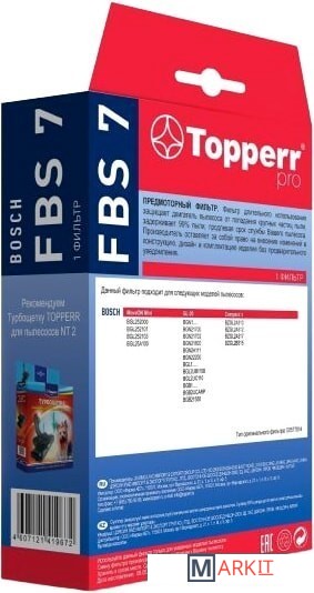 Markit » Аксессуары для пылесосов, пароочистителей » Фильтр электродвигателя Topperr FBS7