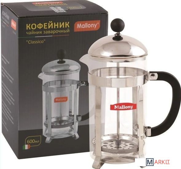 Markit » Заварочные чайники, кофеварки, френч-прессы » Френч-пресс Mallony Сlassico T002-600ML 950144