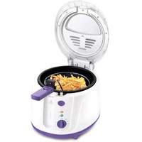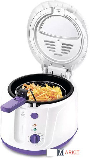 Во фритюрнице продукты жарятся в глубоком слое горячего масла. С помощью регулятора вы можете плавно устанавливать температуру приготовления.Продукты во фритюре готовятся быстрее, чем на сковороде из-за короткого воздействия высокой температуры со всех сторон. Несмотря на то, что продукты готовятся в масле, в жаренных во фритюре продуктах масла обычно содержится меньше, чем в жаренных на сковороде. Хорошо зажаренные во фритюре продукты покрыты хрустящей корочкой, под которой почти нет масла.Во фритюре можно готовить картофель фри и картофель по-деревенски, чипсы, овощи, рыбу, мясо и птицу, куриные окорочка и крылышки, креветки. Все это можно жарить в кляре и без кляра. Кроме этого, можно жарить котлеты, чебуреки, пельмени, фрикадельки, пирожки, беляши, пышки, пончики и многое другое, например, луковые кольца, кольца кальмаров, грибы и даже соленья.Корпус, крышка и ручка корзины выполнены из термостойкой пластмассы.У фритюрницы есть защита от перегрева при приготовлении. При перегреве сработает термостат, который отключит фритюрницу от сети питания.
