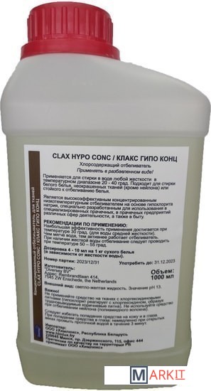 Применяется для стирки в воде любой жесткости в температурном диапазоне 20 - 40 град. Подходит для стирки белого белья, неокрашенных тканей (кроме нейлона) или стойкого к отбеливанию белья.Является высокоэффективным концентрированным низкотемпературным отбеливателем на основе гипохлорита натрия, специально разработанным для использования в специализированных прачечных, в прачечных предприятий различных сфер деятельности, а также в быту.РЕКОМЕНДАЦИИ ПО ПРИМЕНЕНИЮ:Наибольшая эффективность применения достигается при температуре 30 град. (для воды средней жесткости).Чем мягче вода, тем активнее работает отбеливатель. При наличии жесткой воды отбеливание следует проводить при температуре 50 – 55 град.Дозировка 4 - 10 мл на 1 кг сухого белья (в зависимости от жесткости воды).Важно! Не применяйте средство на тканях с хлоргексидиновыми пятнами (гипохлорит реагирует с хлоргексидином, образуя трудновыводимые коричневые пятна).Не используйте средство при отбеливании нейлона (полиамидного волокна).