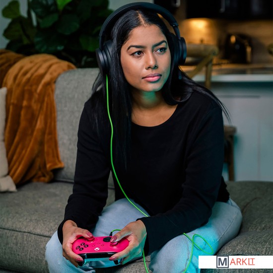 Погрузитесь в атмосферу сюрреализма с беспроводным геймпадом Xbox особой серии Lunar Shift, c меняющей цвет, с серебристо-золотым мерцанием передней панелью и прорезиненными рукоятками серого и черного цвета с рифлением в виде завитков. Вы больше не упустите цель благодаря текстурированной поверхности триггеров, бамперов и задней части корпуса.