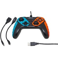 Проводной геймпад GP-014 совместим с ОС Windows версии XP и выше, а также со смартфонами на базе ОС Android 5.0 (требуется поддержка устройств OTG). Благодаря двум кабелям OTG, входящих в комплект геймпада, не требуется приобретение дополнительных переходников для подключения к смартфону.Вибромоторы геймпада GP-014 предназначены для предоставления пользователю тактильной обратной связи. В играх эта возможность используется для усиления эффекта погружения, для передачи информации о состоянии (например, получение повреждений), для предупреждения о приближении к важным объектам и в иных целях.