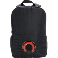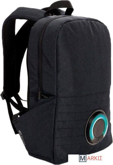 Просто находка для веселых и динамичных людей. На передней части расположена съемная колонка, которая не только проигрывает музыку, но еще и светится, меняя при этом цвет. Колонка надежно защищена от попадания воды и пыли, степень защиты IPX5. При необходимости, беспроводную колонку можно снять и использовать отдельно, для этого нужно просто повернуть ее и потянуть на себя. Время работы без дополнительной подзарядки составляет 5 часов. На рюкзаке также предусмотрен выход USB. Подсоедините свой внешний аккумулятор к кабелю внутри рюкзака, а зарядный кабель смартфона – к выходу USB, таким образом можно заряжать телефон на ходу.