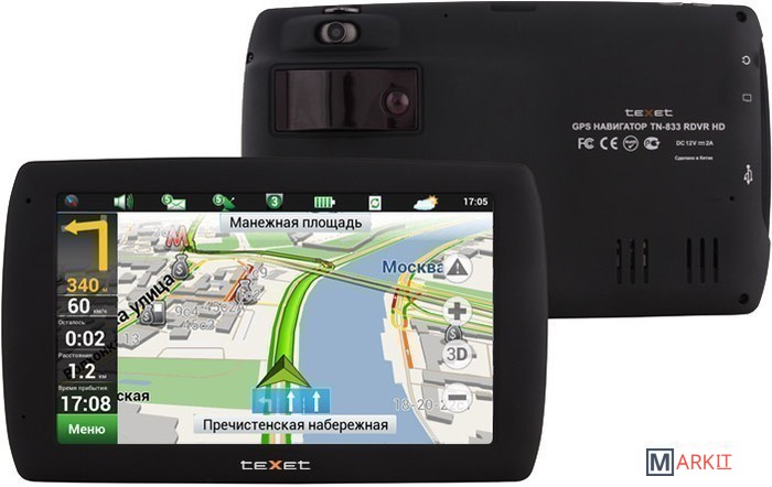 TN-833 RDVR HD - уникальный навигатор, имеющий функции видеорегистратора и радар-детектора. Устройство базируется на стабильной платформе MediaTek MT 3351C -500 МГЦ, имеет 128МБ оперативной и 4Гб накопительной памяти. Кроме большого 7-дюймового сенсорного экрана высокого разрешения, в модели есть встроенная поворотная камера для записи видео 720p и встроенный широкодиапазонный радар детектор для обнаружения сигналов радара в диапазонах К,Ка,Кu,Х, а также лазерных измерителей скорости.