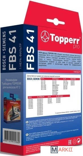 Markit » Аксессуары для пылесосов, пароочистителей » HEPA-фильтр Topperr FBS 41