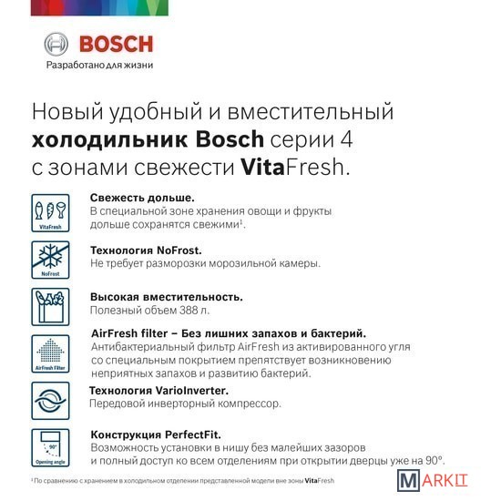 суперзаморозка, суперохлаждение, независимая регулировка температуры, ECO, сигнал открытой двери, блокировка от детей |