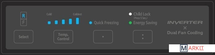 суперзаморозка, суперохлаждение, независимая регулировка температуры, ECO, сигнал открытой двери, блокировка от детей |