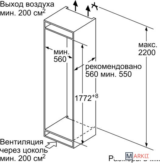 Размеры ниши для встраивания