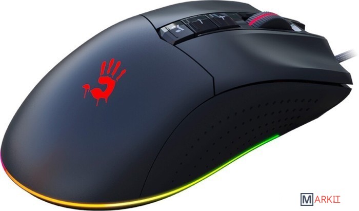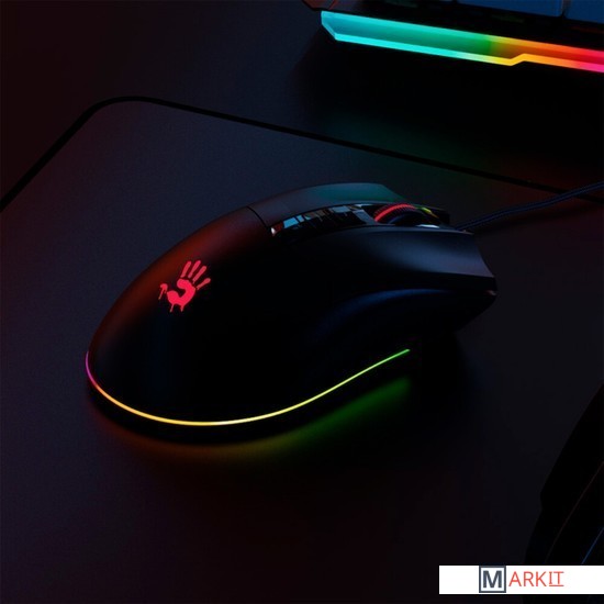 Кастомизированный сенсорБлагодаря профессиональному сенсору с характеристиками 10000 CPI, 8000 FPS, 250 IPS и ускорением 35 g, мышь обеспечивает точность и управляемость там, где нужна быстрота реакции: в играх FPS и тп.5 эффектов RGB подсветкиЭффекты подсветки настраиваются поднятием мыши и нажатием кнопки [+]. По умолчанию загружены 5 типов эффектов подсветки.Настройка кнопки [M]Кнопку [M] можно настроить самостоятельно посредством программного обеспечения.ПО Bloody EsportsПрограммное обеспечение Bloody Esports – это набор многофункциональных программ редактирования для игровой мыши. Оптимизируйте наиболее подходящую конфигурацию для игры посредством кнопок, чувствительности, макросов и т.д.Металлические ножки X'GlideПрочные, чувствительные, без износа, устраняют трение практически на любой поверхности.