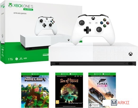 • Консоль Xbox One S• Беспроводной геймпад• Кабель HDMI• Кабель питания• Комплект батареек• Инструкция• Подписка Xbox Live Gold (1 мес.)• Minecraft, Sea of Thieves, Forza Horizon 3