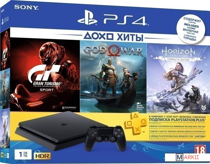 • Консоль PlayStation 4 Slim• Беспроводной геймпад Dual Shock 4• Моногарнитура• Кабель питания• HDMI-кабель• USB-кабель• Подписка PS Plus (3 мес.)• 3 игрыВертикальная подставка в комплект не входит! |