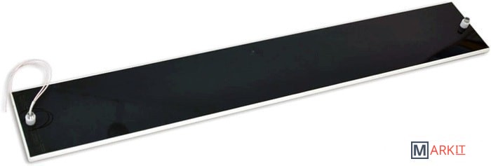 Соединение двух материалов позволило создать эффективный и надежный инфракрасный обогреватель. Новая технология позволила создать обогреватель меньшего размера, благодаря отсутствию корпусной алюминиевой рамки. А толщина обогревателя всего 10 мм, делает его элегантным и эстетически привлекательным для любого интерьера.Монтаж на потолок производится с помощью тросиков и монтажного комплекта с регулируемой высотой подвеса. Либо дополнительно можно приобрести кронштейн.