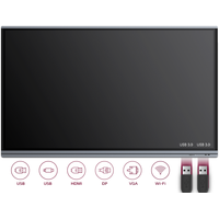 - пульт ДУ- USB стик- интерактивное перо (7 шт.)- аудиокабель- кабель HDMI- кабель USB- кабель питания- документация |