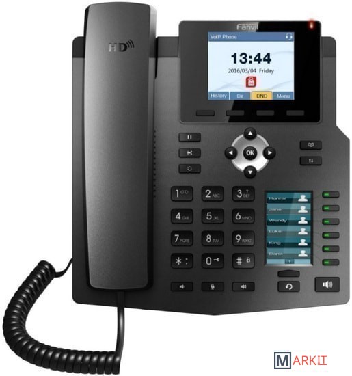 Fanvil X4U - это профессиональный VoIP-телефон с сетевыми портами 10/100/1000, с цветным дисплеем и вторым 6-ти строчным ЖК-дисплеем на 5 страницах, всего 30 настраиваемых клавиш.