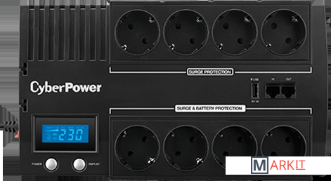 CyberPower BR700ELCD - эта серия ИБП CyberPower предоставляет домашним и офисным пользователям резервное электропитание для персональных компьютеров, сетевого, коммуникационного оборудования, и других электронных устройств от перепадов, скачков, провалов напряжения и прочих инцидентов в электроснабжении.