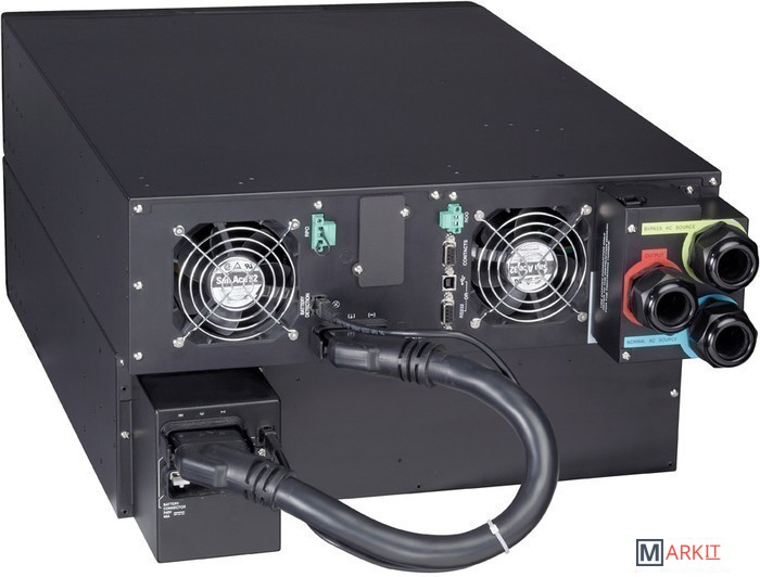 ИБП с двойным преобразованием напряжения с КПД до 95%, имеет универсальный корпус с возможностью как вертикальной установки, так и горизонтального монтажа в 19” стойку.