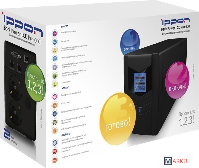 Markit » Источники бесперебойного питания » Источник бесперебойного питания IPPON Back Power LCD Pro 600