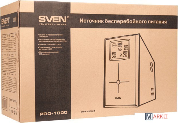 Markit » Источники бесперебойного питания » Источник бесперебойного питания SVEN Pro+ 1000 (LCD, USB)