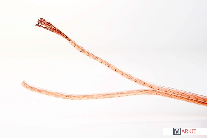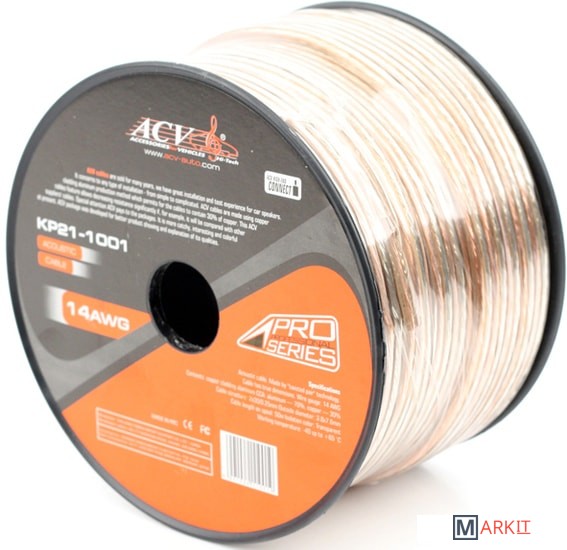 Акустический кабель 14AWG. Состав: плакированный медью алюминий CCA: алюминий 70%, медь 30%. Структура кабеля: 2x30/0.25 мм. Внешний диаметр; 3.8x7.6 мм.