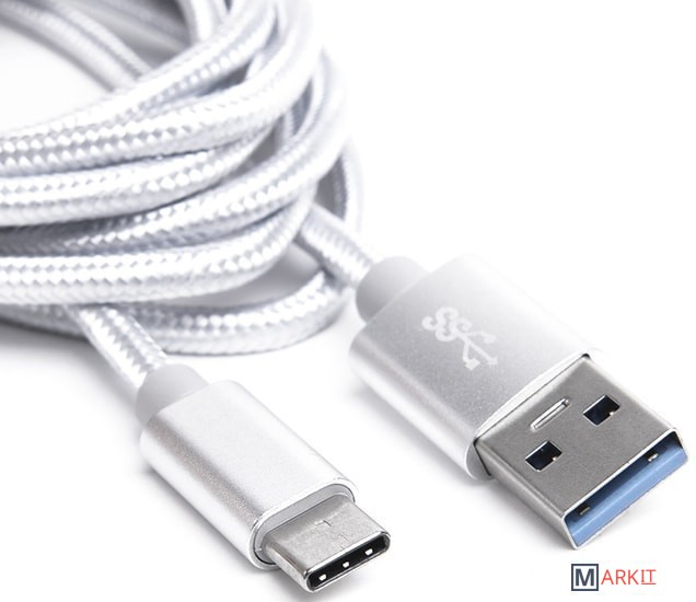Markit » Кабели, адаптеры, разветвители » Кабель Atom USB Type-C 3.1 - USB Type-A 3.0 (1 м, серебристый)