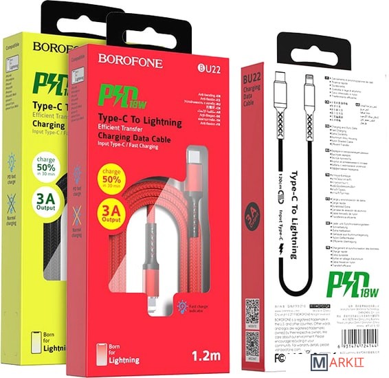 Markit » Кабели, адаптеры, разветвители » Кабель Borofone BU22 USB Type-C/Lightning (красный/черный)