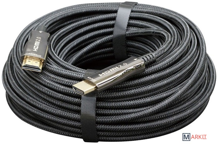 Активный оптический (AOC) телекоммуникационный кабель High speed HDMI вилка-вилка, с Ethernet, серия "AOC Premium"Активный оптический (AOC) High Speed HDMI кабель использует оптоволокно для передачи HDMI-сигнала. Что обозначает, что сигнал передается без влияния помех на гораздо большие расстояния, чем по медным проводам. Медный провод используется только для передачи питания, т.е. дополнительный источник питания - не требуется.Кабель премиального качества с оплеткой и стильными металлическими разъемамиБлагодаря оптоволокну - кабель имеет гораздо меньший диаметрПоддержка разрешений до 4K UHD при частоте обновления экрана 60 Гц
