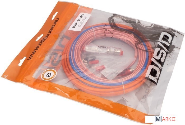 Комплект кабелей для подключения 2-канального усилителя.В комплект поставки входит:- 4,5м 8AWG оранжевый матовый силовой кабель;- 0,7м 8AWG черный матовый силовой кабель;- miniANL держатель с предохранителем на 50А;- 5м 2-канальный RCA кабель витая пара;- 5м 18AWG голубой управляющий провод;- 8 мм клеммы вилка (красн+черн);- клеммы позолоченные кольцевые 8мм (2шт);- изолятор красный/черный.