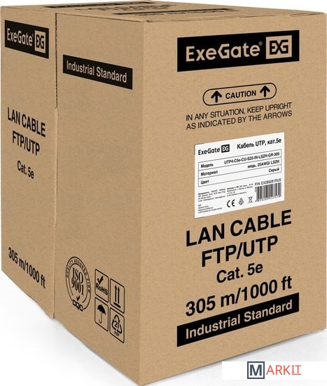 Markit » Кабели, адаптеры, разветвители » Кабель ExeGate UTP4-C5e-CU-S25-IN -LSZH-GR-305 UTP