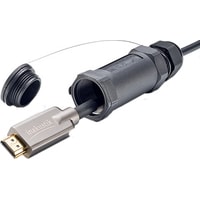 Изготовленный с применением оптоволоконной технологии профессиональный HDMI-кабель, поддерживающий скорость передачи данных до 24 Гбит/с при длине кабеля до 100 м. За счет этого кабель обеспечивает передачу видео высокого разрешения в формате 4К с частотой кадров 50 или 60 Гц, цветовой субдискретизацией 4:4:4, а также в формате HDR, и используется для соединения устройств с разъемом HDMI2.0b, расположенных на больших расстояниях друг от друга. Благодаря солидному армированию спиральными стальными нитями и кевларовыми волокнами кабель обладает высокой прочностью и способен выдерживать растягивающие нагрузки величиной до 100 кг, а кратковременно — даже до 200 кг. Кроме этого, цельнометаллические штекеры во время транспортировки и монтажа/демонтажа защищены пластиковыми гильзами с резьбовыми крышками. Таким образом, кабель подходит для жестких сценариев применения с повторяющимися циклами монтажа/демонтажа, таких как использование во время шоу или сценических постановок. Важно: из-за наличия в штекерах электроники нужно обращать внимание на направление движения сигнала в данном кабеле!