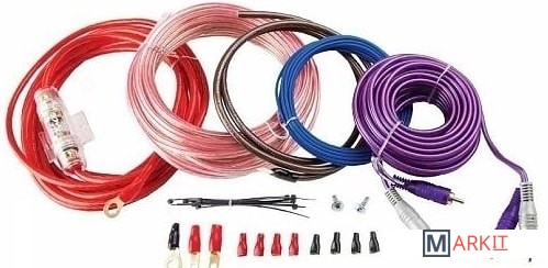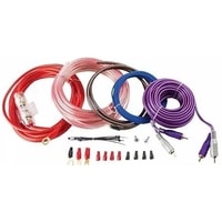 5м 8AWG силовой медно-алюминиевый кабель красного цвета в сборе с держателем для предохранителя типа AGU и силовой O-образной клеммой1м 8AWG силовой медно-алюминиевый кабель заземления коричневого цвета в сборе с U-образной клеммой5м межблочный кабель 2RCA/ 2RCA с прямыми коннекторами10м 16AWG медно-алюминиевого кабеля с прозрачной изоляцией для подключения динамиков5м 18 AWG провод управления голубого цветаO-образная клемма с изоляцией 1 шт.U-образная клемма с изоляцией 2 шт.Коннекторы для динамиков с изоляцией 8 шт.1x40A предохранитель типа AGUВинты для крепления колбы предохранителя 2 шт.Стяжки для проводов 10 шт.