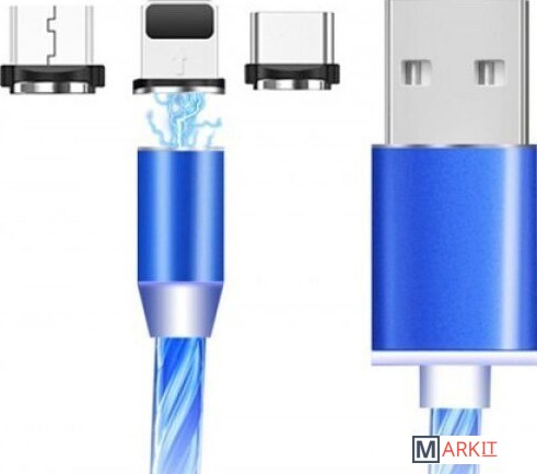 Магнитный кабель USB 3 в 1 это идеальное решение для упрощения зарядки телефона и других электронных устройств. Позволяет подключить телефон для зарядки одной рукой, что является значительным облегчением, например, для водителей, повышающих их безопасность в процессе вождения. Кабель оснащен оплеткой с подсветкой и синим светодиодом.