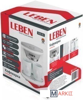 Капельная кофеварка Leben готовит 6 чашек кофе за 1 цикл работы. Гигиеничный материал не меняет вкус напитка и не боится высоких температур. Капельная кофеварка Leben оснащена функцией подогрева. А это значит, что бодрящий кофе дольше остается горячим после приготовления. Чтобы вам было удобно отслеживать количество порций, резервуар для воды имеет деления.
