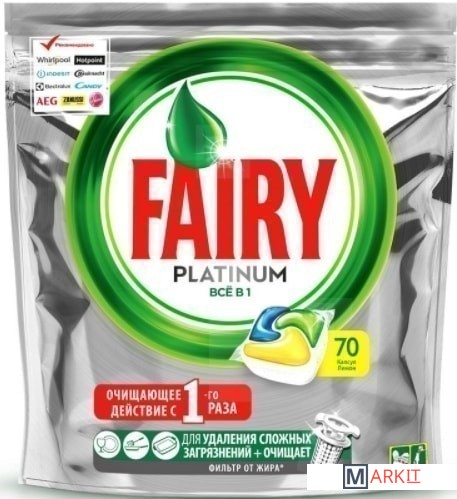 Markit » Средства для посудомоечных машин » Капсулы для посудомоечной машины Fairy Platinum Lemon All in 1 (70 шт)