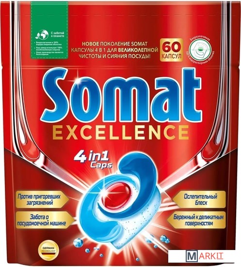 Markit » Средства для посудомоечных машин » Капсулы для посудомоечной машины Somat Excellence 4 in 1 Caps (60 шт)