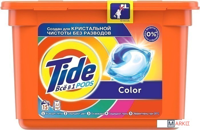 Markit » Средства для посудомоечных машин » Капсулы для стирки Tide Все в 1 Pods Color (15x22.8 г)
