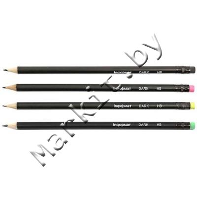 Карандаш чернографитный Dark inФормат, твердость грифеля ТМ, корпус черный, цвет ластика ассорти (цена за 1 шт.) Код: 31368