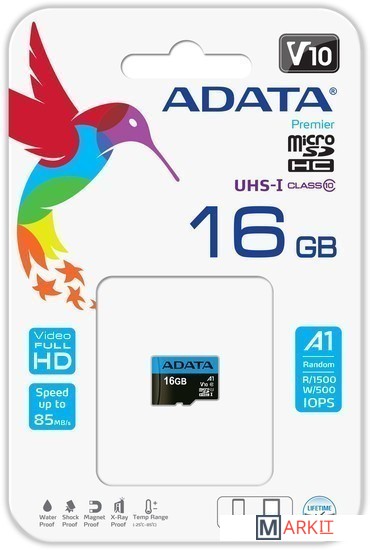 Markit » Карты памяти » Карта памяти A-Data Premier AUSDH16GUICL10A1-R microSDHC 16GB