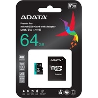Карта памяти A-Data Premier Pro AUSDX64GUI3V30SA1-RA1 microSDXC 64GB (с адаптером) Код: 96580