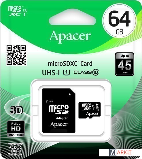 Markit » Карты памяти » Карта памяти Apacer microSDXC (Class 10) 64GB + адаптер [AP64GMCSX10U1-R]