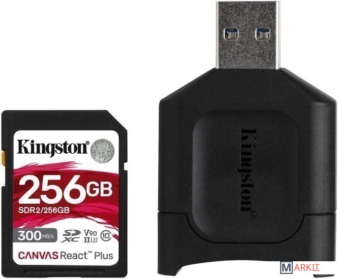 Markit » Карты памяти » Карта памяти Kingston Canvas React Plus SDXC 256GB (с кардридером)
