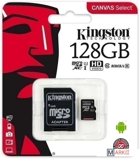 Markit » Карты памяти » Карта памяти Kingston Canvas Select SDCS/128GB microSDXC 128GB (с адаптером)