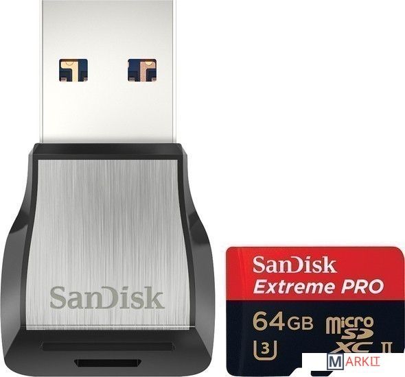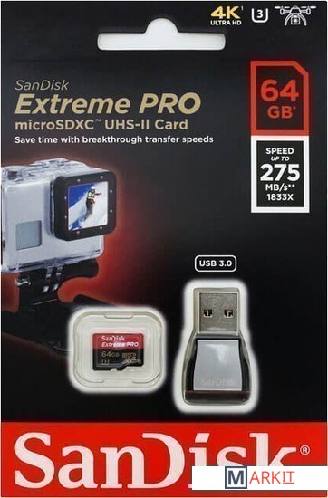 Markit » Карты памяти » Карта памяти SanDisk Extreme Pro microSDXC 64GB + кардридер [SDSQXPJ-064G-GN6M3]