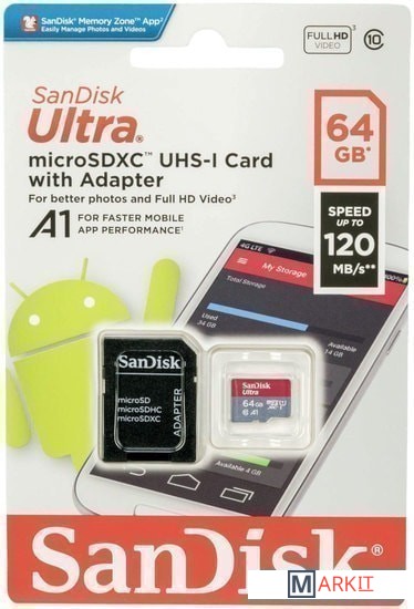 Markit » Карты памяти » Карта памяти SanDisk Ultra SDSQUA4-064G-GN6MA microSDXC 64GB (с адаптером)